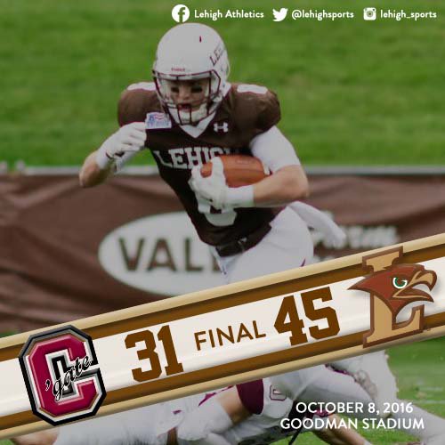 Key stops by senior LB Colton Caslow, senior LB Pierce Ripanti, and senior DB Laquan Lambert on 3rd down exemplified the second half effort, giving Colgate no answer to Lehigh's big-play touchdowns.