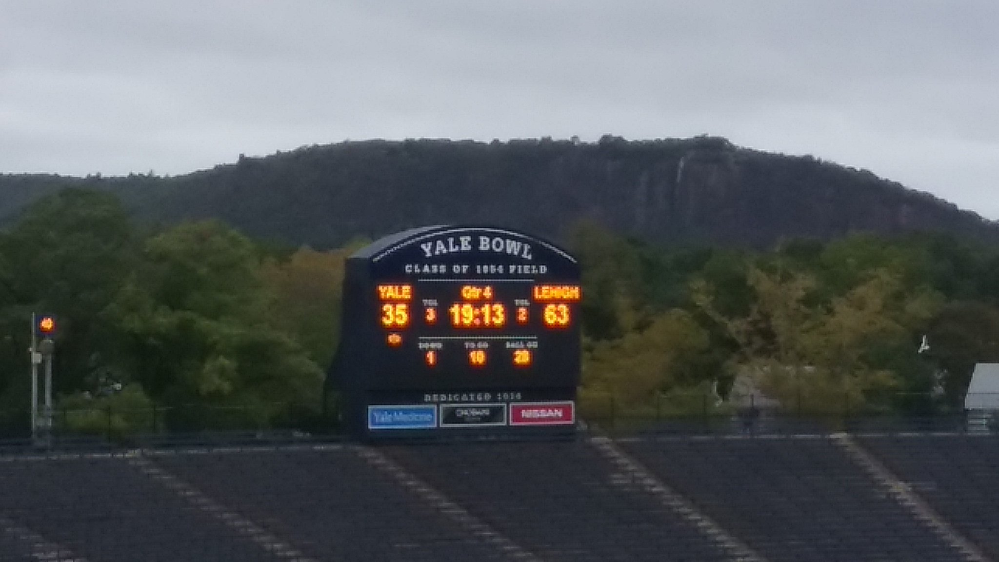 Combined, Lehigh's and Yale's 70 points would be the most ever recorded in a half of football at the Yale Bowl. Lehigh QB Bob Aylsworth's record 454 passing yards in the Yale Bowl, broken. The all-time team and individual Lehigh records for passing yards in a game, broken. All-time touchdown pass record, tied. Most points scored by an Andy Coen-coached team, broken.